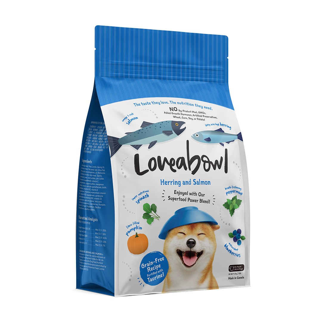 LOVEABOWL HERRING AND SALMON  is formulated to meet the nutritional levels of the Dog Food Nutrient Profile for All Life Stages as well as the Dog Food Nutrient Profile for Adult Maintenance established by the Association of American Feed Control Officials (AAFCO).